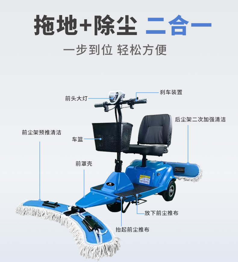 使用電動塵推車的安全問題用戶朋友需注意 塵推車作為商場超市車站主要的塵推工具,既可以清潔地面,在配合塵推油使用還可以對地面起